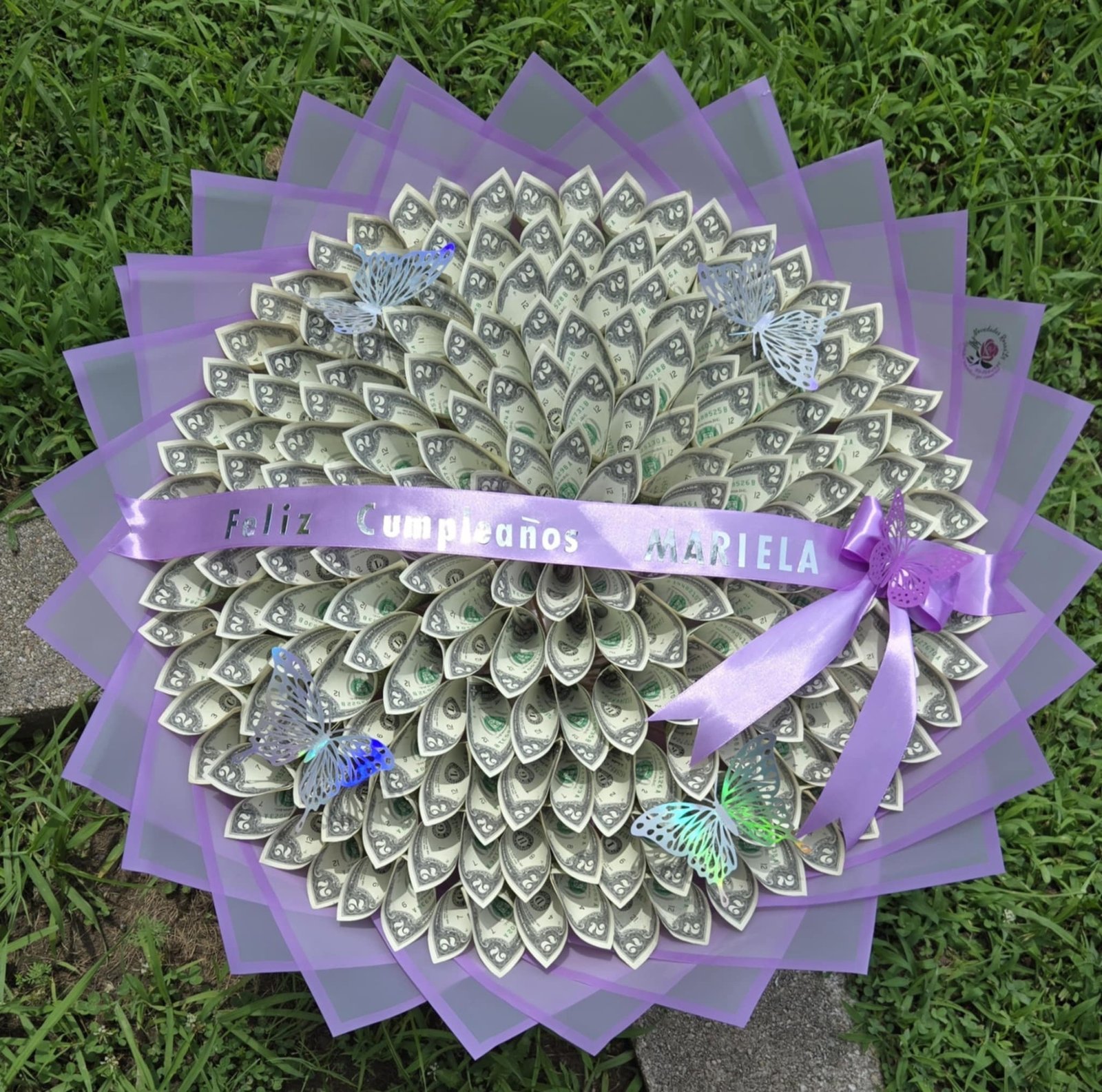 Incluye 200 dls en billetes de 2, en forma de corazon,